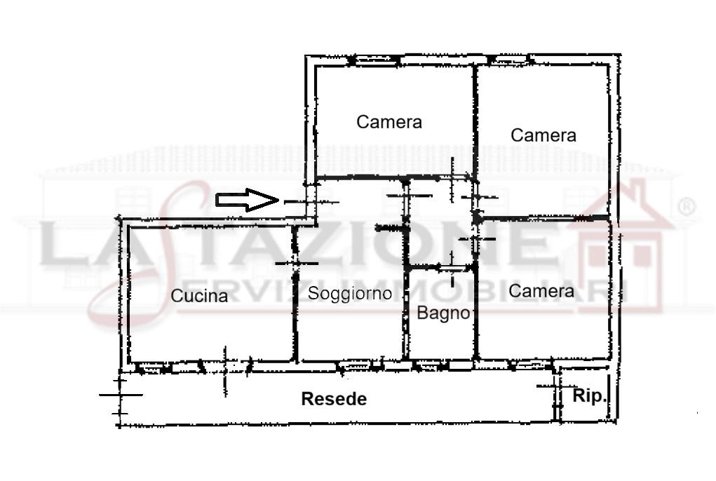 In comoda zona residenziale, Appartamento al piano terra di bel fabbricato bifamiliare CON INGRESSO INDIPENDENTE: ingresso, soggiorno, grande cucina abitabile separata con accesso al resede esclusivo con locale magazzino, dis. notte, tre camere matrimoniali e bagno. Buone condizioni, zona ideale per raggiungere ogni servizio! OTTIMO PREZZO!!